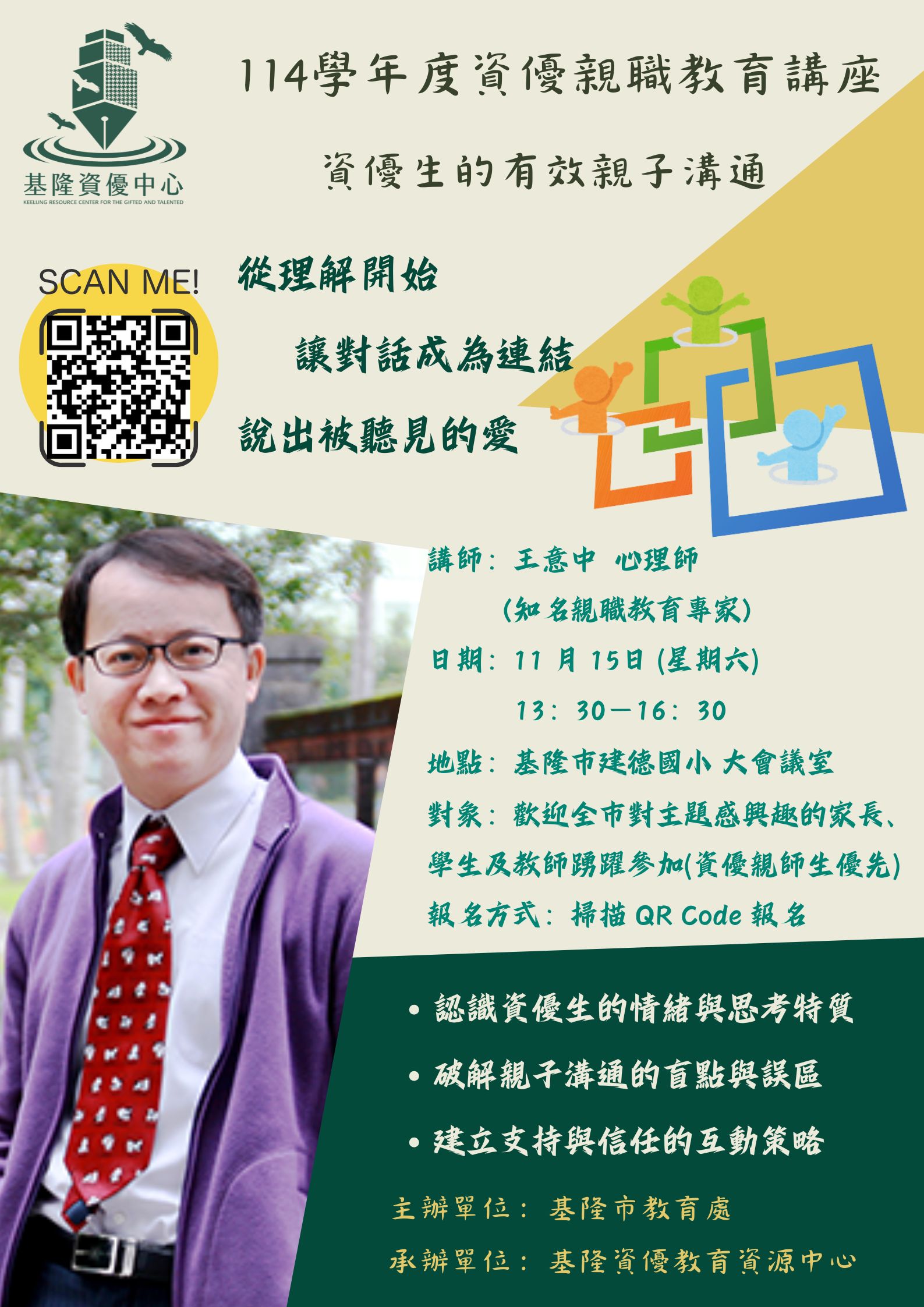 本市資優教育中心辦理親職教育講座「資優生的有效親子溝通」